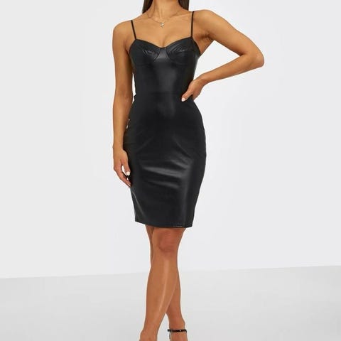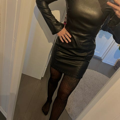 PU skinnkjole med puffermer, fra HM i str 40🖤 Glidelås ned til rumpa. Brukt én gang