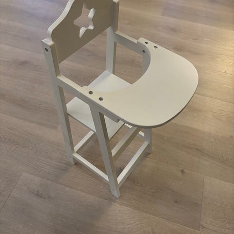 Forseggjort dukkestol i tre. Passer til Babyborn og litt større dukker.