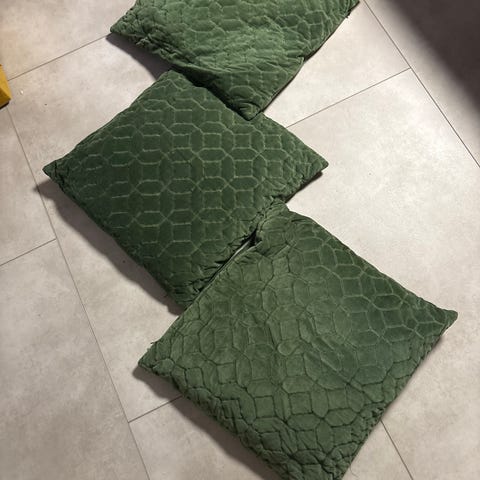 Pene pynteputer i mørk grønn, nesten ikke brukt. selger med både puter og trekk for 200kr ☺️ Frakt betales av kjøper!