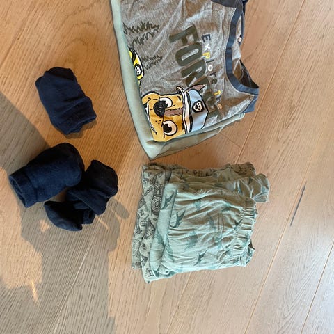 Dinosaur klær. Marks & Spencer/Next and other brands barneklær i størrelse 1,5-3år, laget i fleece materiale. Plaggene har dinosaurer flerfarget design og er egnet for både gutter og jenter. Inkluderer ulike sett med langermede topper og bukser, samt heldrakter med hette og dekorative detaljer.