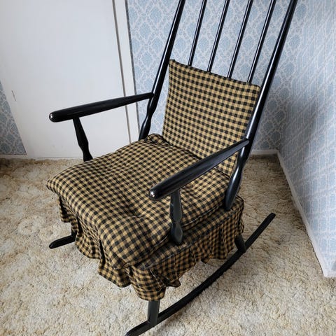 Ila minst 70-100 år har den i familien vært det mest ettertraktede møbelet å sitte i når gjester kom. Den trenger en "shinings", eller en kan gjøre som oss; ha et teppe i. Den bærer preg av slitasje og bruk, men er kjempegod å sitte/gynge i!