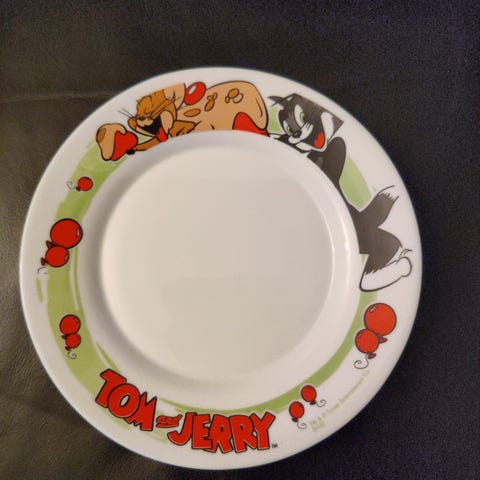 Vintage tallstallerkener med Tom og Jerry-motiv, bursdagsfest