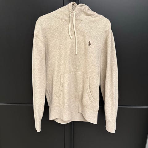 Ralph Lauren Polo genser i størrelse M, laget av bomull. Genseren har hette og er grå i fargen. Designet for menn, Den har blitt brukt par ganger men ikke mye