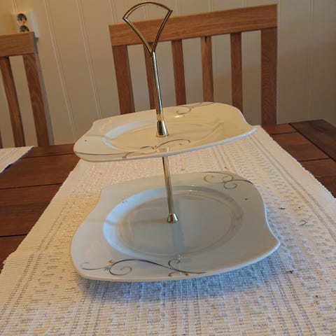 Vintage rektangulært lefse/kakefat.Flott mønster. Mål: 34 cm langt. 15 cm brett. 1,5 cm høyt.