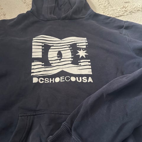 Tøff hettegenser DC str 14 år selges for 100 kr