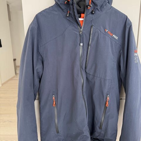 Bergans skalljakke 1252 Dynamic neo jacket i mørk blå med røde detaljer. Godt brukt, men ingen merker eller hull. Synlig brukt på innsiden, se bilde. Selges derfor billig. Men mer bruk igjen i denne kvalitetsjakken!