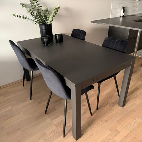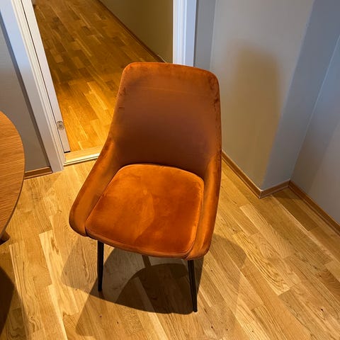 6 stk Craftenwood Atlantic, kjøpt på Bohus i 2015. Polstrede bøtteseter. Trukket i grått ullstoff.