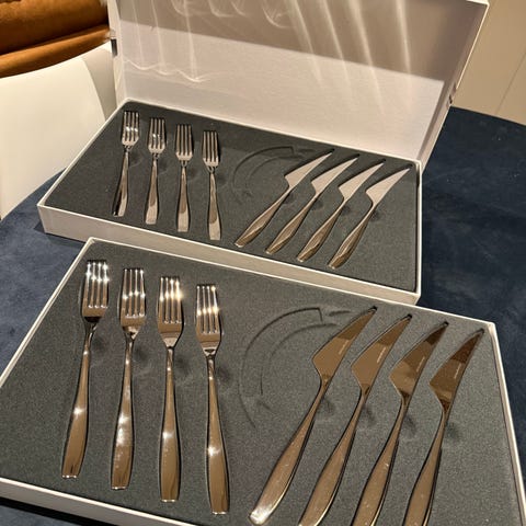 Hardanger Bestikk . Settet er designet for servering av kaffe og latte, og er egnet for bruk i hjem eller serveringssteder.