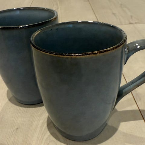 Kjøpt for en evighet siden og selges pga plassmangel! Nydelig turkis/grønn farge 🩵 Kjøpt som tekopper til et sett med kanne, så vil tro de også gjør seg godt som espressokopper (og kan brukes til varm drikke). Rommer 95ml. Jeg har brukt disse til telys, men brukt veldig sjelden og mest ligget lagret.