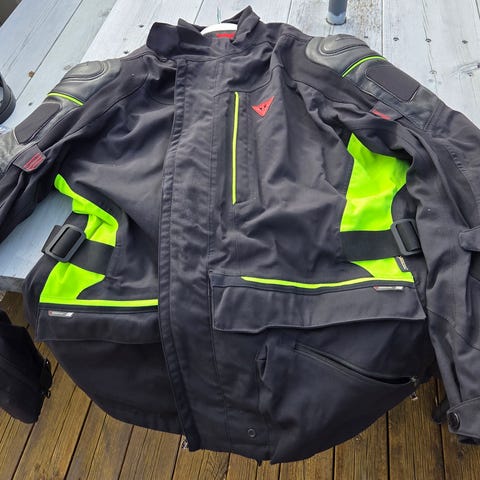 Strøken Dainese D Dry bukse og jakke i str 56 som kan monteres sammen til hel dress, eller brukes hver for seg.