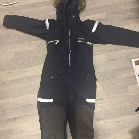 Didriksons barneklær dress i størrelse 134, unisex design. Dressen er grå og laget av polyamid materiale. Passer for barn og har praktiske lommer og glidelåsdetaljer.