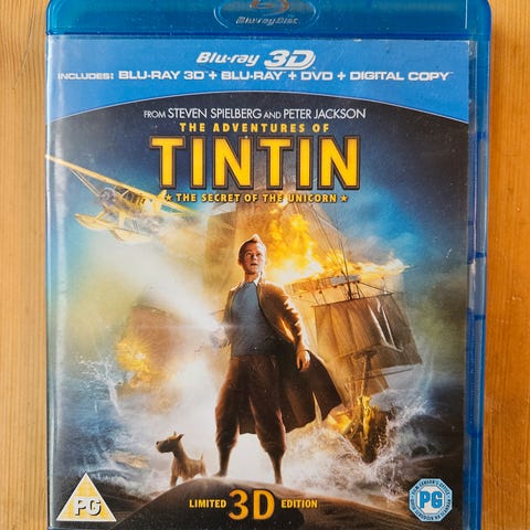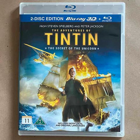Blu-ray familiefilm. TINTIN. The Secret of the Unicorn. Engelsk tale/tekst. Fra 2011. 107 min. I god stand.