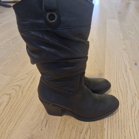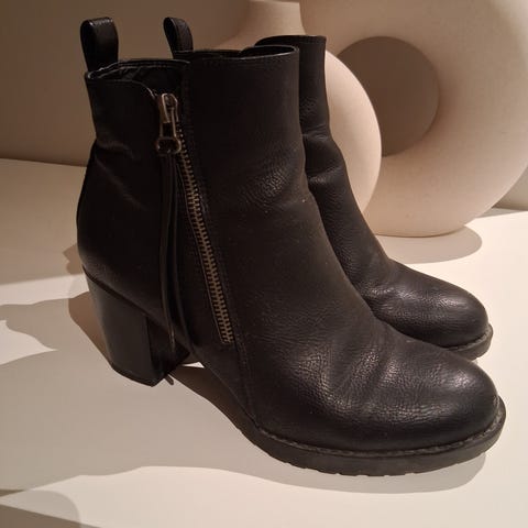 Svarte ankelboots i skinn – str. 39 – pent brukt