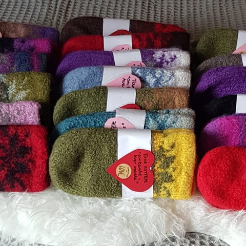 Gi en Gave som varmer 🥰 Hjemmestrikket tovede votter for Dame og Ungdom str. S/M