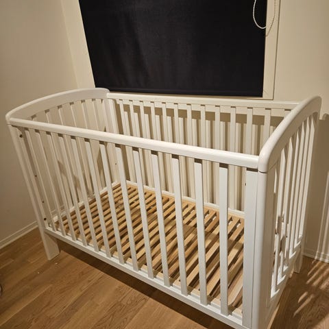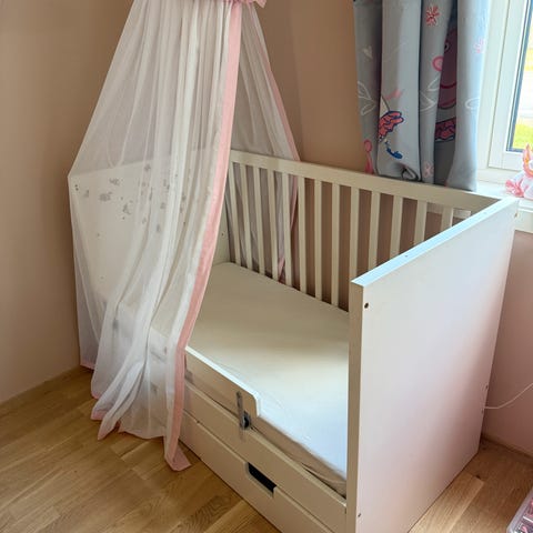 Barnet valgte å sove i den større sengen sammen med moren sin, 😅 så vi brukte den ikke i det hele tatt. 👌🏼Madrassen er ny og ren. 😉