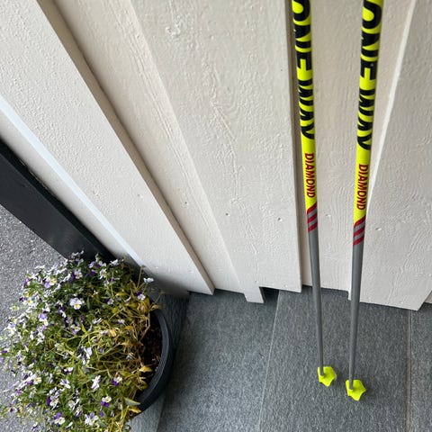 OneWay Langrennsstaver staver med lengde 110 cm, svart og gul farge. Staver har spisser for bruk på snø og håndremmer for bedre grep.
