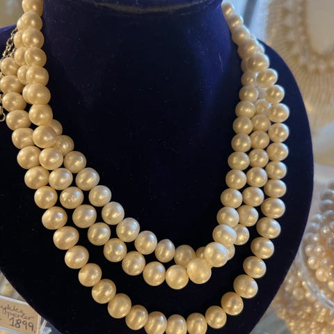 Et vakkert og elegant perlekjede i bronsefarge med klassisk design.