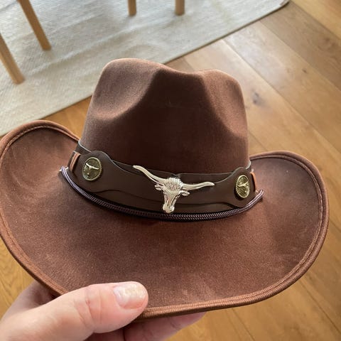 Fin brun Volvo cowboy hatt selges pga passer ikke