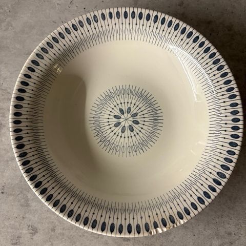 En vintage tallerken i Blå Blomst fra Egersund Fajanse (uten gullkant). Produsert i perioden 1934-1958.