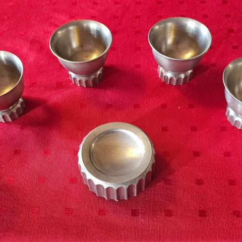 Selges 5 krydder oppbevaringskrukker med magnet, pris kr. 20 hver, totalt 100 kroner.