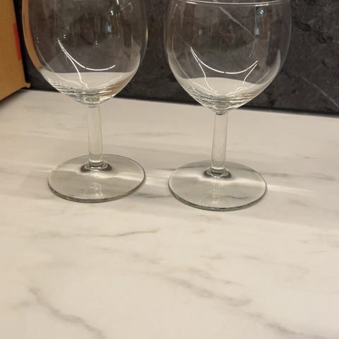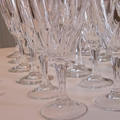 Vi selger et komplett sett med 6 pent brukte, klassiske vinglass. Disse glassene har en tidløs design som passer like godt til hverdag som til festlige anledninger.