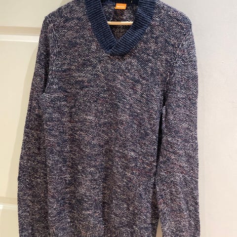 J. Lindeberg Merinoull genser i blå farge, størrelse L for herre. Laget av 100% merinoull, som gir varme og komfort. Genseren har en klassisk passform og er egnet for hverdagsbruk.