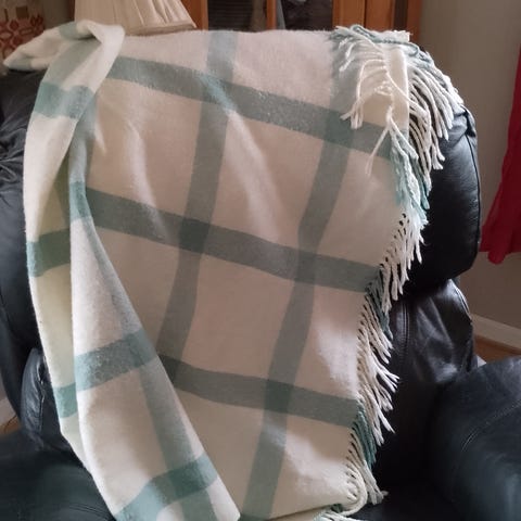 Manterol pledd laget av 100 % akryl med rutemønster i fargene beige, brun, grønn og rød. Pleddet har frynser i endene og er egnet for bruk i ulike årstider.