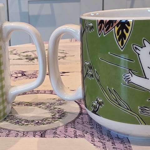 To Mummi barnekopper fra Rätt Start, produsert i Sverige. Retro design, pen stand.