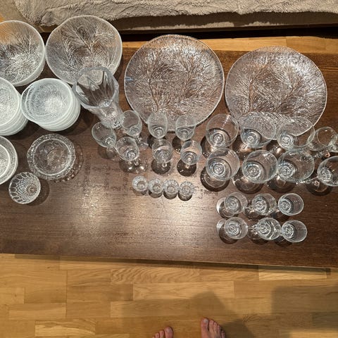 Elegante vintage glass i klart, slipt krystall. Vakker dekor og klassisk form – passer perfekt til champagne, dessert eller servering.