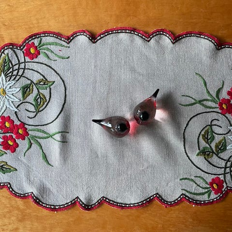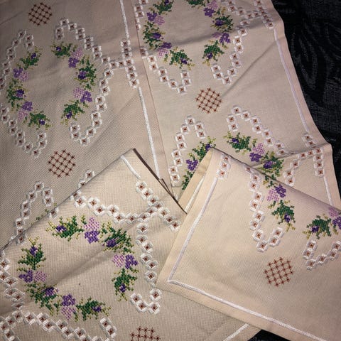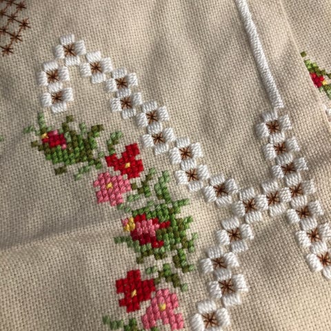 Juleduk i lin. Broderipakke med broderigarn og duk