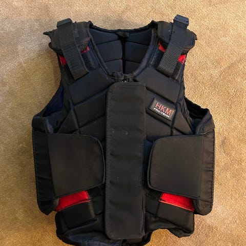 HKM Pro-Team beskyttelsesvest i svart farge. Vesten er designet for å gi beskyttelse under ridning og har justerbare stropper for tilpasning.