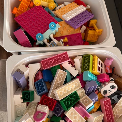 Pent brukt, men fullt funksjonelt utvidet sett med Duplo-tog som barnet vårt har vokst ut av