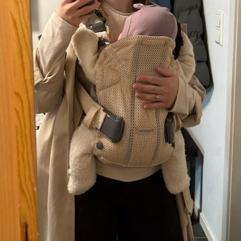 Den fremstår ny og fin, men er også godt brukt da det er en kjempegod bæresele!