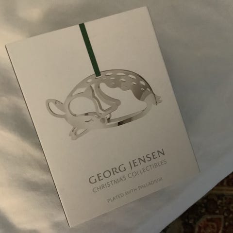 Georg Jensen Annual Collection Jul dekorasjon i gullfarget materiale. Designet som et juletre, brukt til sesongbasert dekorasjon. Forgylt messing 18k. Ubrukt