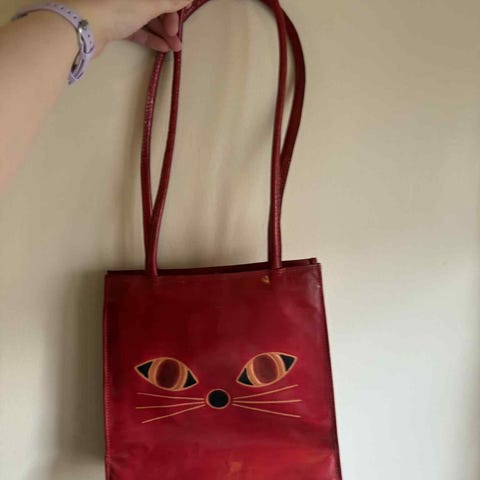 Ny Vintage 90s Katte Veske i Lær 🐱