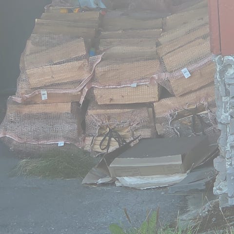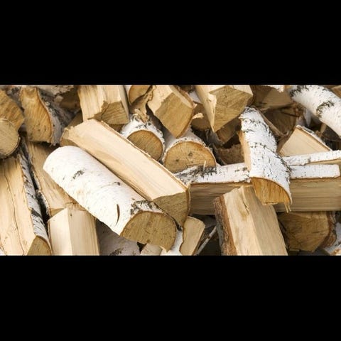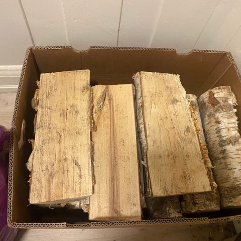 Vedkubber pakket i nettingsekker. Egnet for bruk som brensel til peis eller ovn.