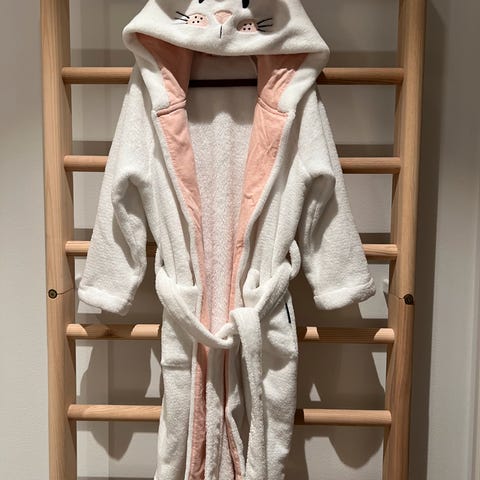 Morgenkåpe med to lommer, glidelås og hette.