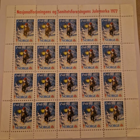 Ark med 25 postfriske Julemerker fra Norsk folkehjelp 1959. Se bilder. Hentes på Jessheim eller sendes mot forhåndsbetaling pluss porto. Porto kr 30,-. Se også mine andre annonser.