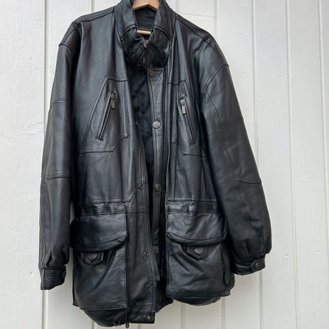 Skinnjakken fremstår hel, ren og pen. Innvendig foret med mykt, litt silkeaktig stoff. Den har hengt i skapet den senere tid, og ikke blitt brukt. Nå er den godt behandlet med preparater for skinn, og klar til bruk !