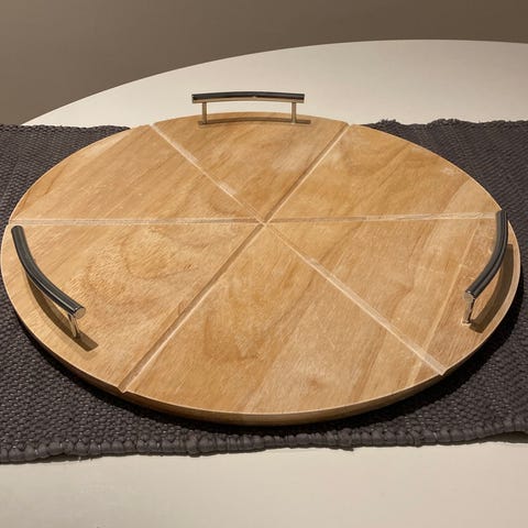 Rotetende serveringsbrett kjøpt på tema for 589kr, men ble for smalt for vårt spisebord(120cm bredde) passer nok veldig bra for vanlig størrelse bord