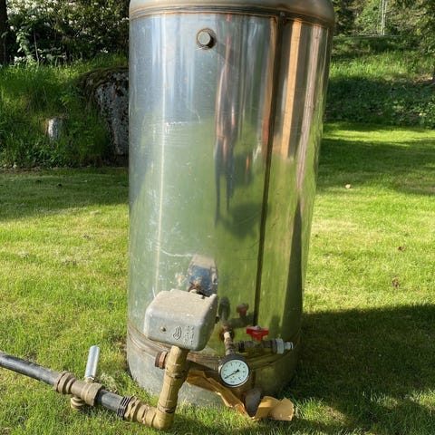 Rustfri tank 200 L. Ble brukt for drikevann.