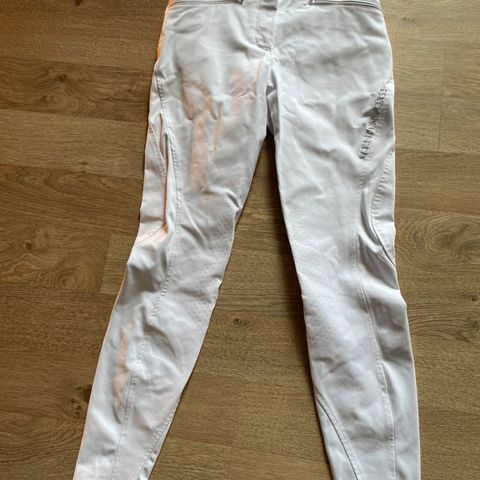 Hvit Mountain Horse ridebukse med fullgrip, i st. 38 selges. Ridebuksen er ikke brukt, og framstår som ny, men jeg har dessverre fjernet lappen.