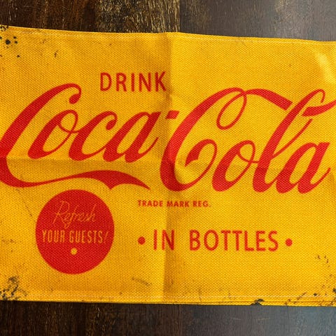 To reklameaskebegre fra hhv. COOP i metall og fra Coca Cola i glass. COOP-figuren er litt avslitt i fargen som vist, det er 14,5 cm i diameter. Glass-askebegeret har litt rue kanter med små nagg på innsiden, det måler 13 x 13 cm.