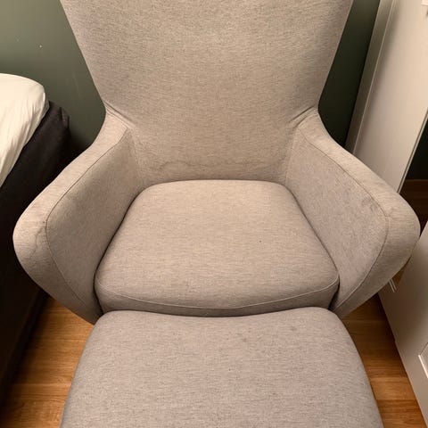 Brukt sofa - nyrenset stoff. Grå farge. Justerbar nakke- og fotstøtte. Jeg har brukt funksjonene lite så disse fungerer godt. Det ene sete har ledning som går til nakke-og fotstøtten. Det skal være to, en er tapt ved flytting. En slik ledning kan skaffes. Eksisterende ledning kan festes på venstre eller høyre del. Denne sofaen er av god kvalitet og er fortsatt fast i sete og rygg. Den kostet ny på Skeidar kr 28000. Kom for å prøve sofaen! Lite bruksmerker. Den er på Bjølsen.