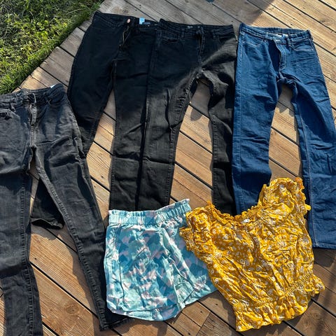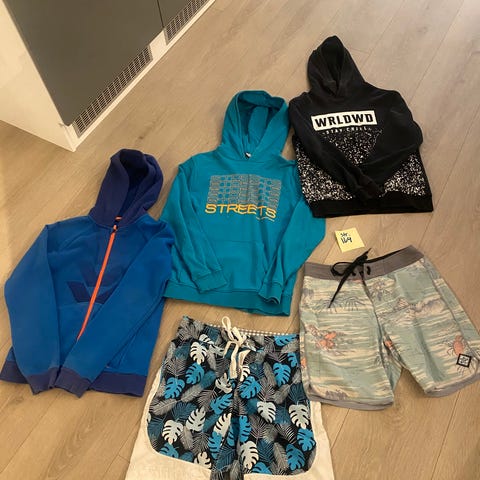 3 skjorter og 1 sort dressbukse. Klærne er pent brukt uten merker. Noe i str 164 og noe i 170
