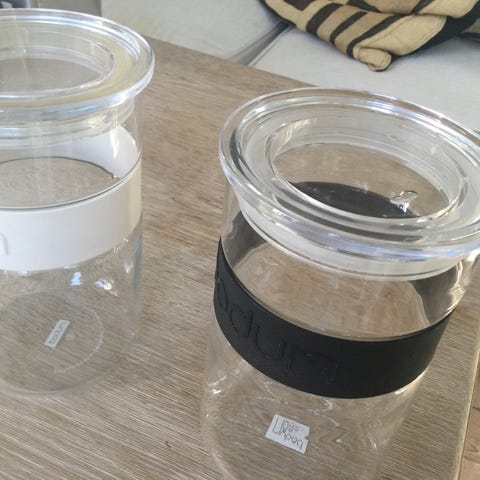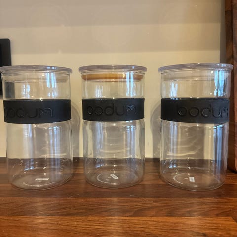 Bodum oppbevaringskrukker sett bestående av 8 krukker i plast med lokk. Krukkene har silikonringer i ulike farger for bedre grep og tetning. Egnet for oppbevaring av matvarer og tørrvarer i kjøkkenet.
