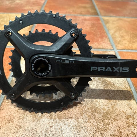 Pent og ubetydelig brukt kranksett. Tatt av en Ridley Grifn og erstattet med barnevennlig kort kranklengde.