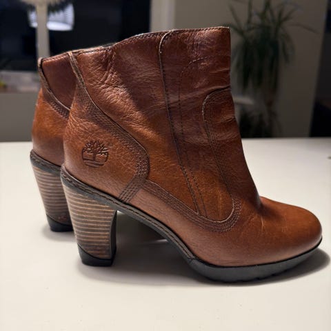 Støvletter med hæler fra Timberland. Ion-mask technologi by P2i. Pent brukt. Gode å gå i, men passer ikke lengre. Strikk på bakside legg, for bedre passform