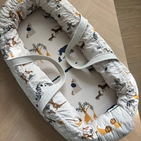Babynest i mykt stoff med dyremønster