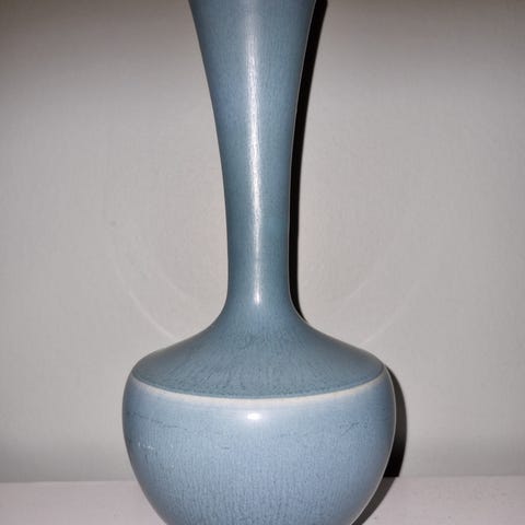 Eldre blå vase fra Vest Tyskland. I fin stand, men et lite nagg på kanten (se bilde).